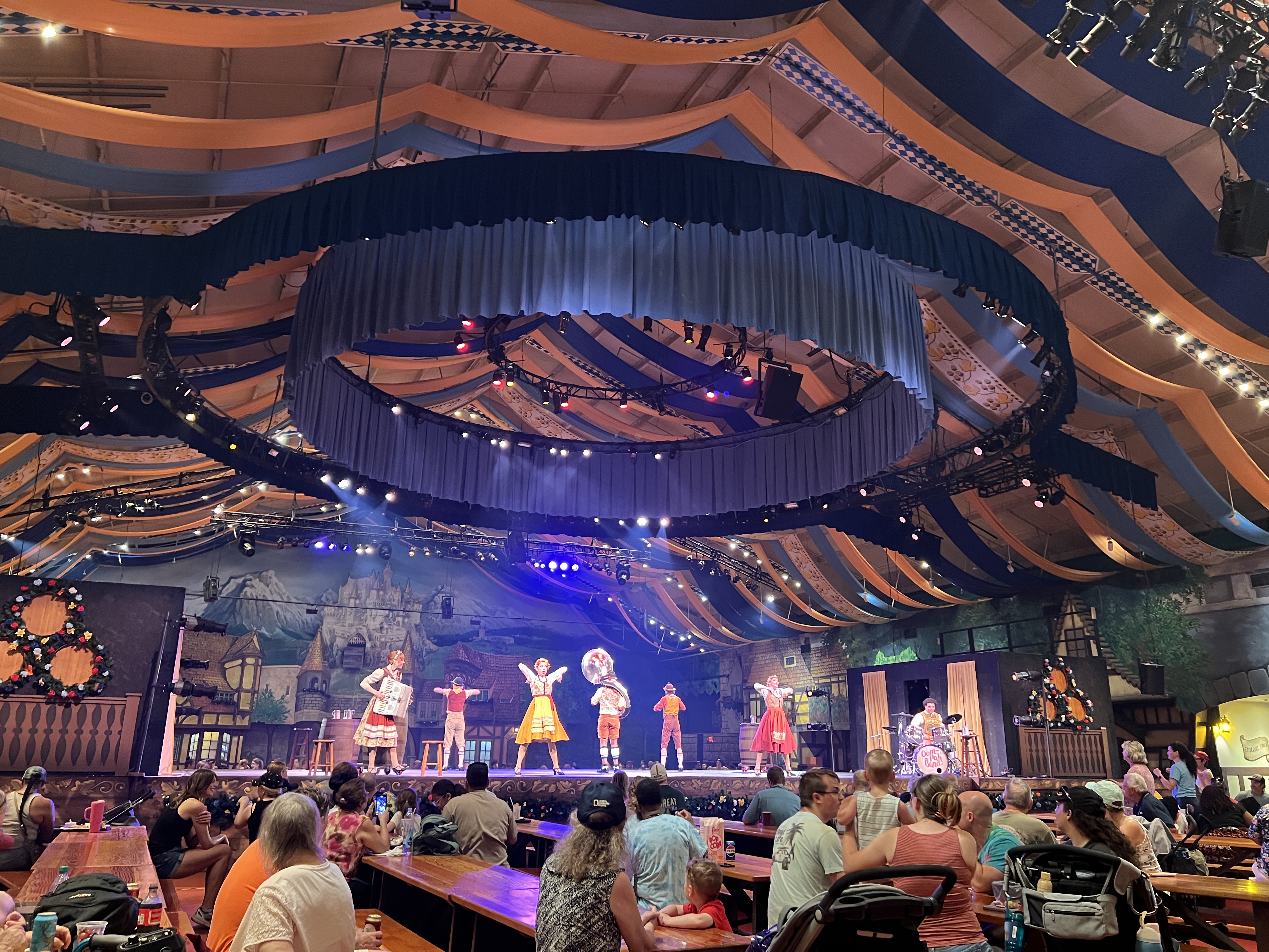 While the food inside the park is nothing to write home about, Festhaus is a solid bet, with hearty fare to keep you going and a festive atmosphere. Beer and wine options are available throughout the park, making it a nice place to relax between rides. For better dining, consider leaving the park for dinner, especially in the summer and then return for nighttime concerts or fireworks, which are often included with admission.